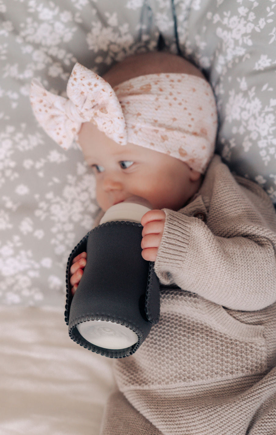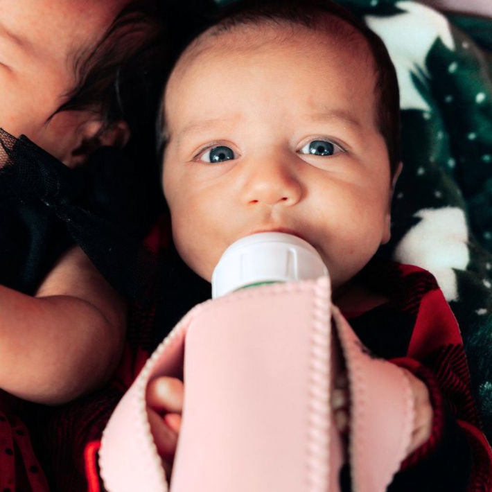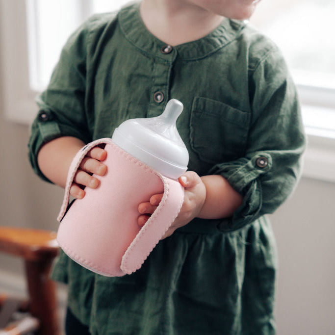 The easy-grip bottle sleeve was designed to fit on any baby bottle, and train just about any baby. And for parents, the range of colors will complement any vibe. (More Colors Coming Soon!)